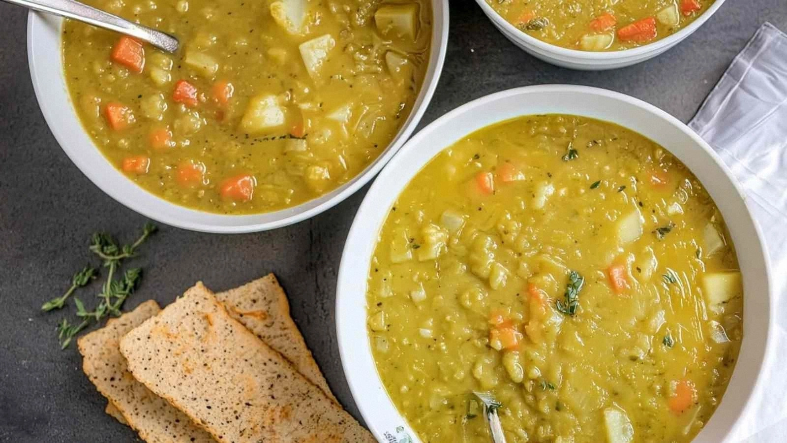 Replace the split peas with lentils, add diced tomatoes, and finish with a drizzle of olive oil and a sprinkle of feta cheese. This version delivers a tangy Mediterranean flavor profile.