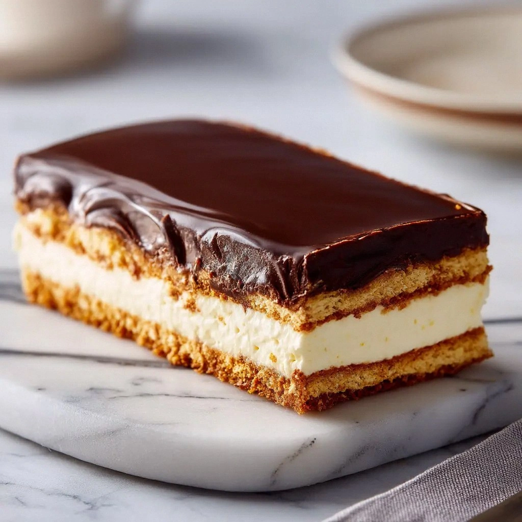 - Texture: Layering the whipped topping with the pudding gives a light, mousse‑like interior that contrasts beautifully with the crunchy graham base, mimicking the classic eclair’s creamy filling and crisp shell.